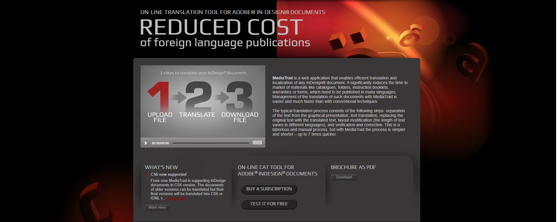 MediaTrad is a web application that enables efficient translation and localization of any InDesign® document. It significantly reduces the time to market of materials like catalogues, folders, instruction booklets, warranties or forms, which need to be published in many languages. Management of the translation of such documents with MediaTrad is easier and much faster than with conventional techniques